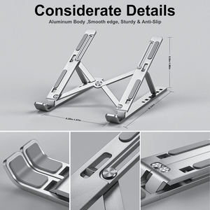 Exquisite Workmanship: This portable laptop stand is made of aluminum alloy with well-polished surfaces and soft rubber pads, protecting your devices from scratches or sliding.